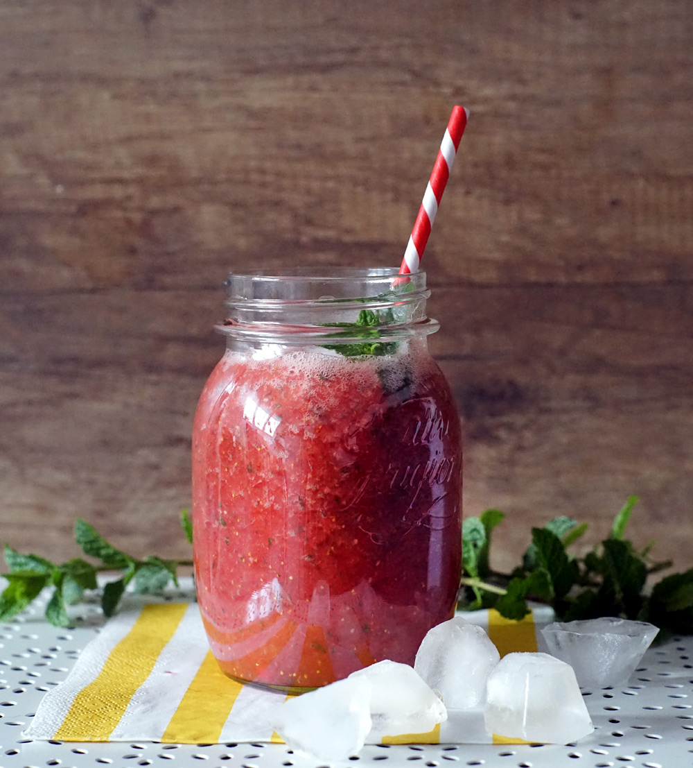 Recept v tomto případě ani není recept, jen orientační souhrn ingrediencí, protože nejlépe si nápoj samozřejmě uzpůsobíte dle vlastních chutí (kolik máty, jak silný čaj, jaký poměr čaje a jahod atd. atd.).